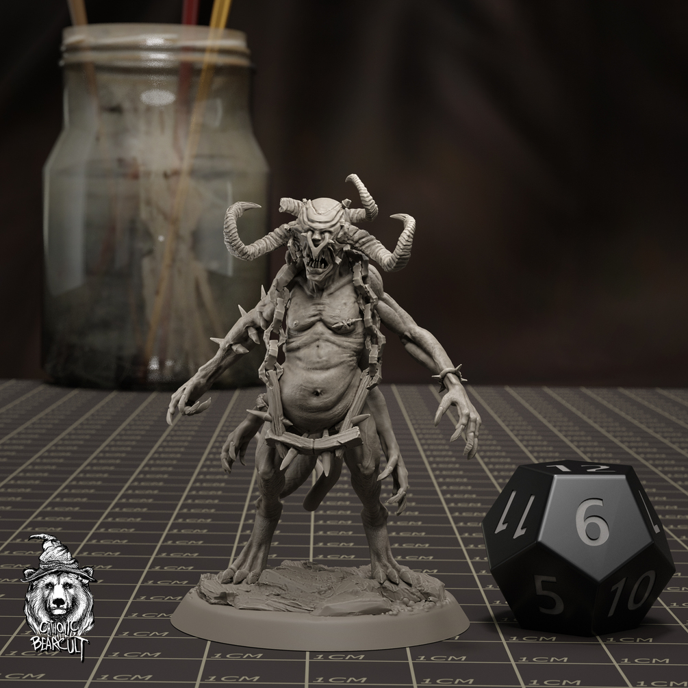Within the infernal realms, the Bound Ones serve as the footsoldiers of demonic legions, lesser demons bound to their masters. As lowly feral fighters in the demonic hierarchy, the Bound Ones are to serve as the vanguard of demonic forces, perpetually trapped in a nightmarish cycle of bloodshed and suffering.