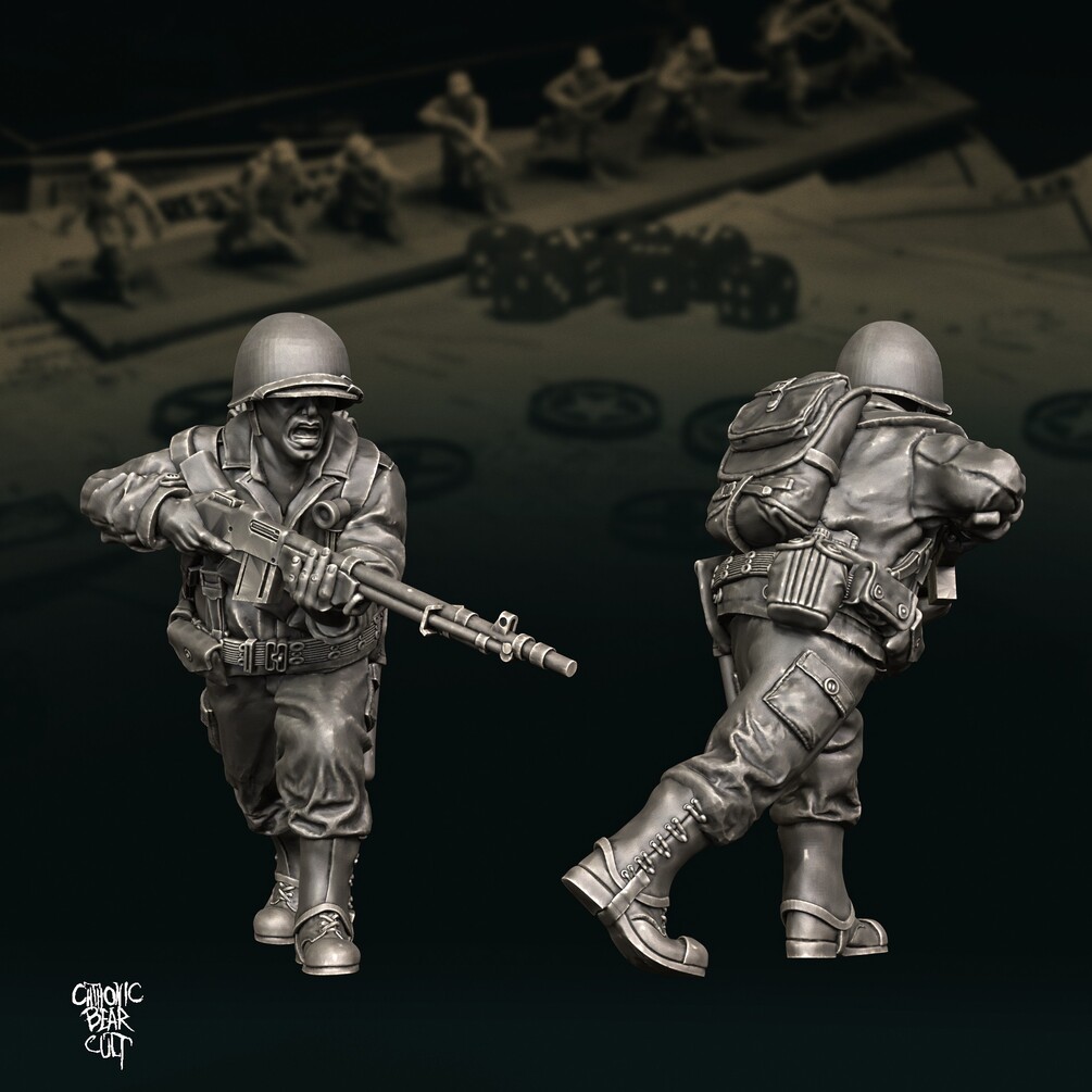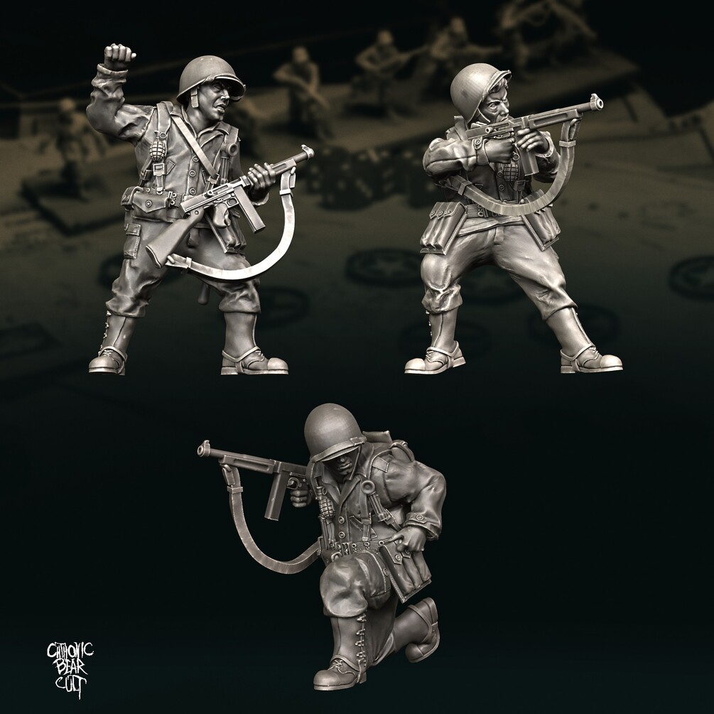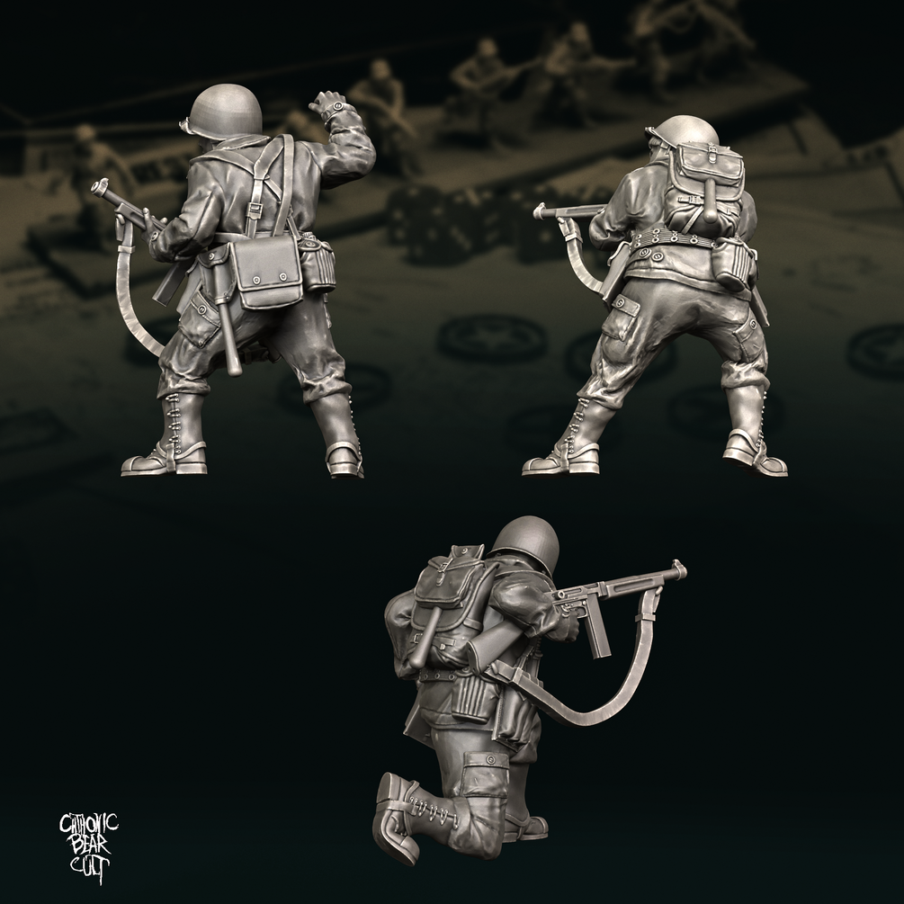 Balanced 9 man US Ranger squad sculpted to represent 1944 Rangers. Suitable for Normandy and onwards!